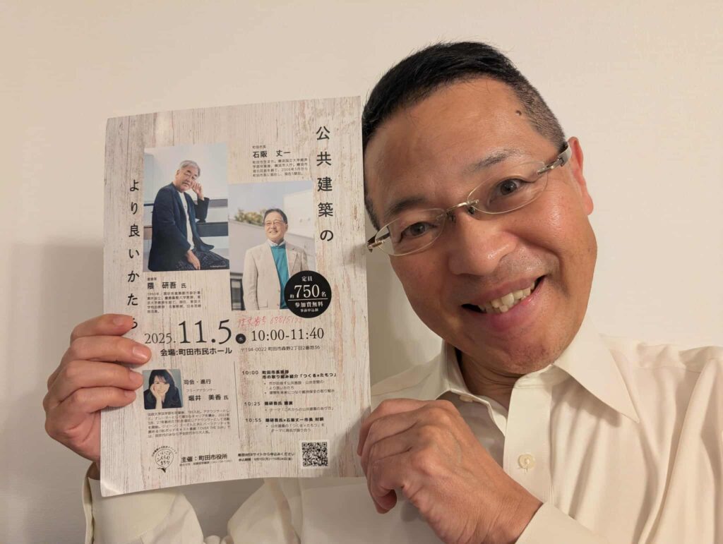 昨日町田市民ホールにて、「公共建築のより良いかたち」と題する講演会に参加いたしました。 まず、石阪丈一町田市長によるご挨拶があり、町田市の取り組み紹介「つくり×たもつ」がありました。