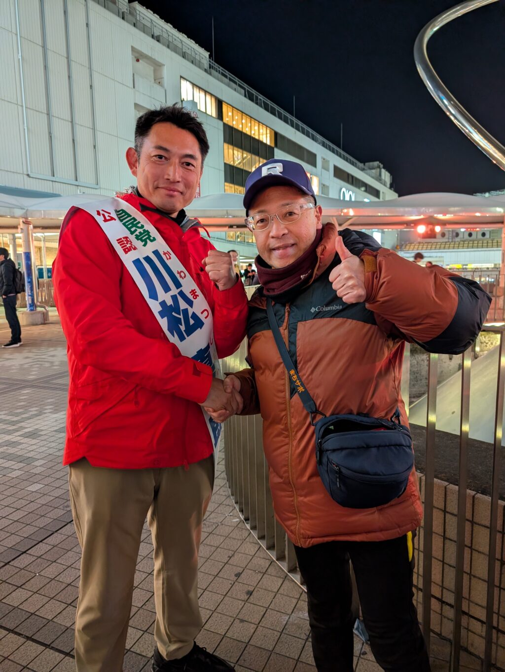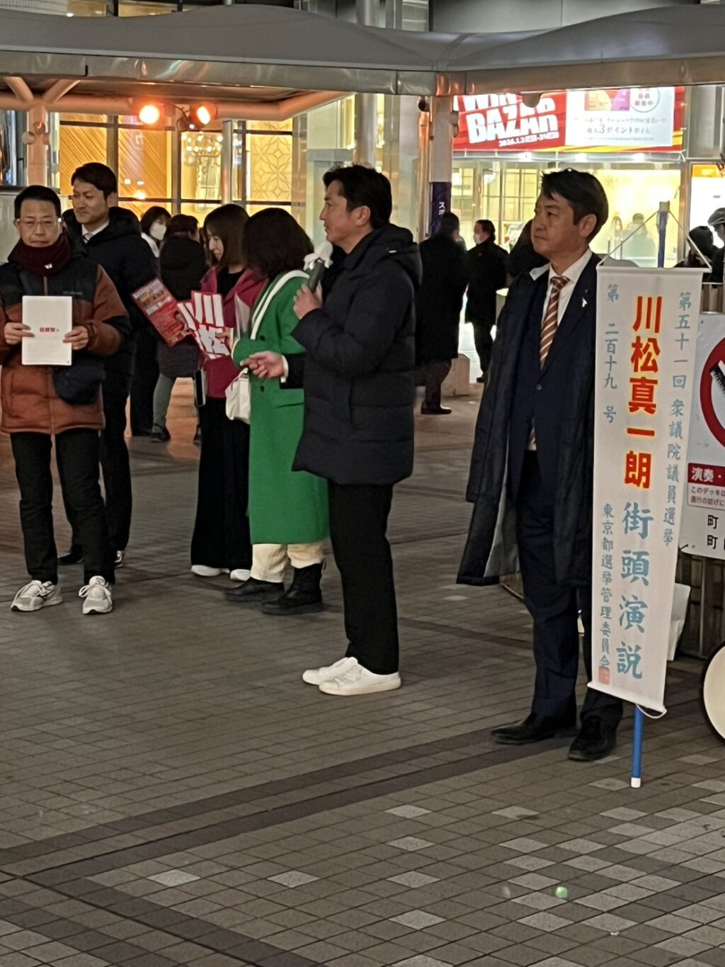 この総選挙最初の日曜日、朝日けんたろう参議院議員が、川松真一朗候補のために、町田市まで応援に来てくださいました。