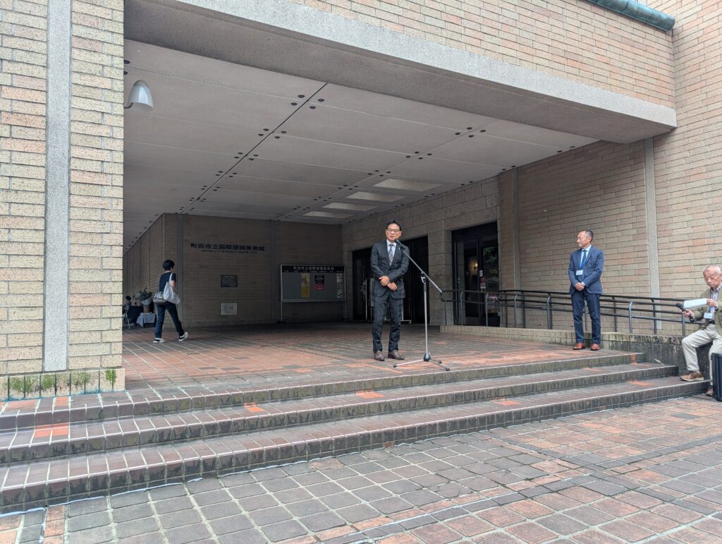 町田市立国際版画美術館正面玄関にて、第27回ゆうゆう版画美術館まつりがの開会式が開催されたので、参加させていただきました。 櫻井純副市長のご挨拶の後、大久保純一館長のご挨拶がございました。 その後、今回のまつりのテーマ「Enjoy Art!!」が紹介されました。 木版画擦り体験等のイベントが昨日、今日の2日間にわたって、開催されました。 #ゆうゆう版画美術館まつり #町田市立国際版画美術館 #三遊亭らん丈 #町田市議会議員三遊亭らん丈 #らん丈 #美術館 #まつり