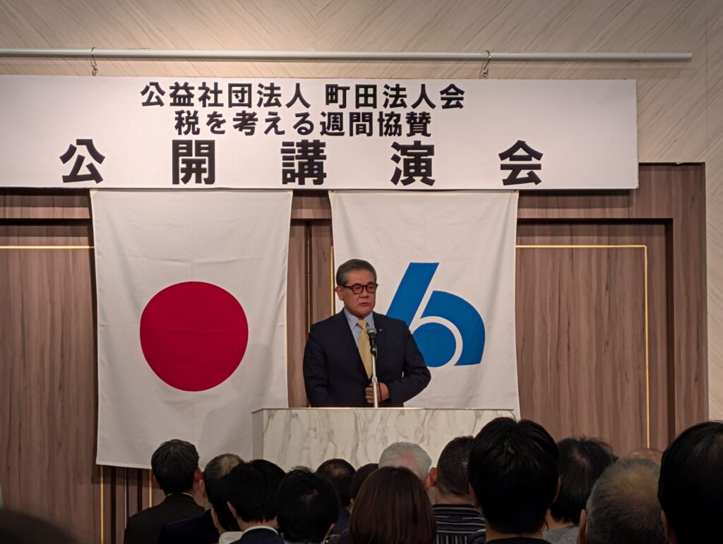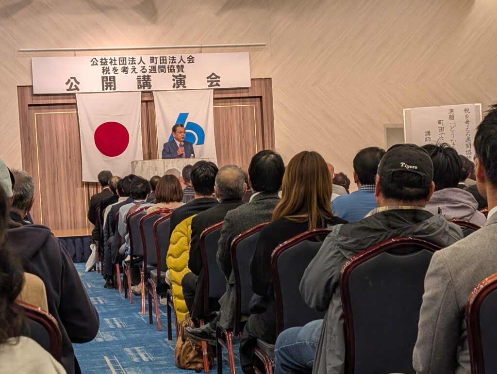 町田法人会では、税を考える週間協賛公開講演会で講師に、須田慎一郎氏をお迎えし、どうなる今後の中小企業「町田でここまで言っていいんかい!?」が開催されたので、参加いたしました。 志水町田法人会会長のご挨拶で、開会しました。