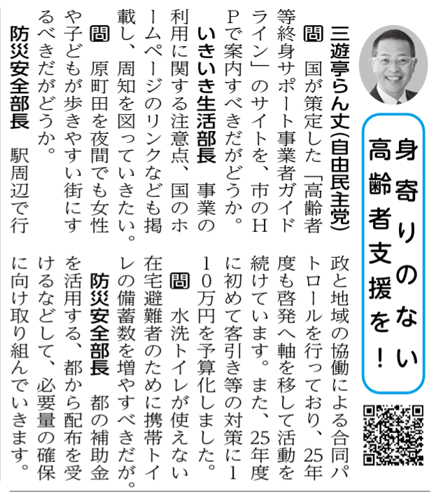 『町田市議会だより』の最新号が、1月30日に発行されました。 その4面に、らん丈の一般質問の要旨が掲載されています。