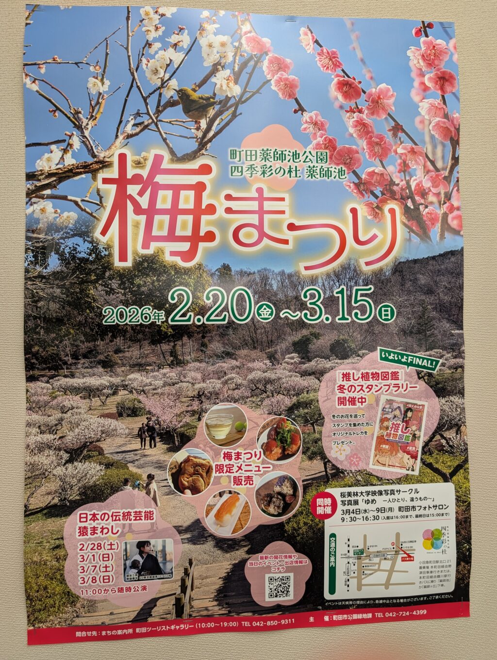 町田薬師池公園 四季彩の杜 薬師池は、「新東京百景」、「東京都指定名勝」に指定された町田を代表する公園です。 園内には梅林があり、約250本の紅白の梅の花を楽しむことができます。