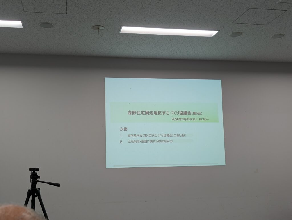 第5回となる、「森野住宅周辺地区まちづくり協議会」が、町田市庁舎にて開催されたので、参加いたしました。 前回の事例見学会の振り返りの後、森野住宅周辺地区には、2,500人規模の音楽・演劇ホールを整備する予定との、説明がありました。