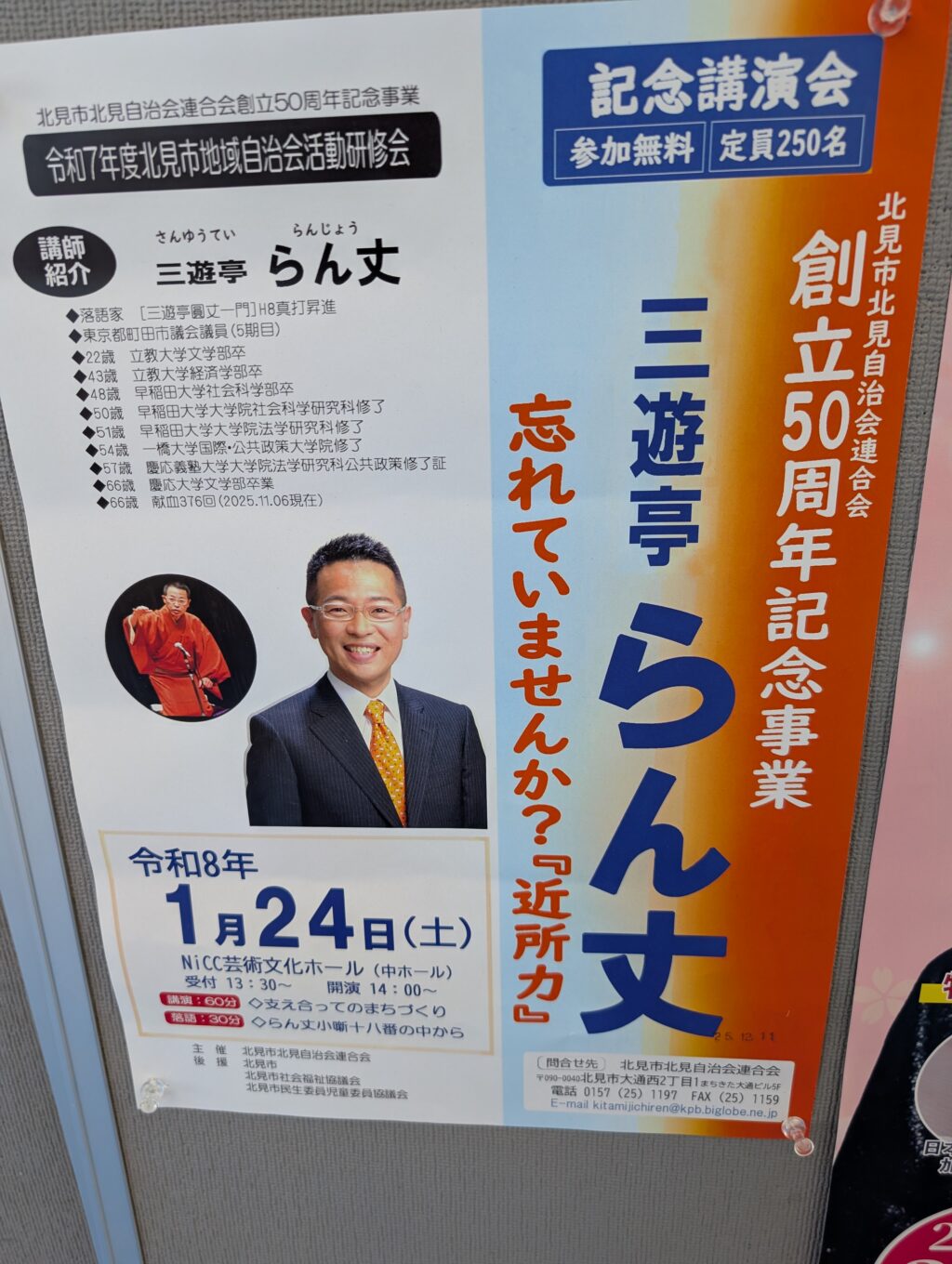 けれども、落語家でありながら市議会議員をつとめ、大学や大学院(慶應義塾、一橋、早稲田、立教)で26年半にわたって修学に努め、学位を7つも修得したうえで、講演を行う者といえば、三遊亭らん丈以外にはいないものと、自負しております!