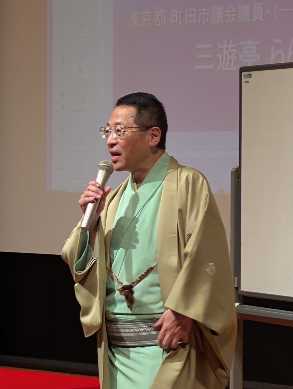 噺家は落語の口演は当然のこととして、社会の現象を分かりやすく解説し、それをお客様に楽しんでいただくのも大事な使命と心得、議員活動の合間を縫って、講演や落語の高座に勤しんでおります。