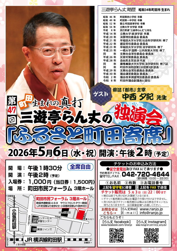 ★三遊亭らん丈独演会 第47回『ふるさと町田寄席』★